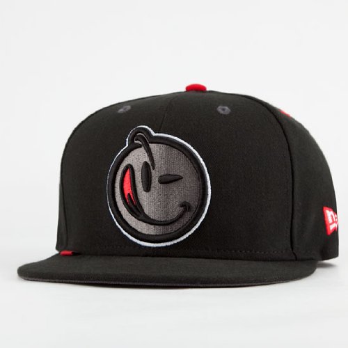 Yums Classic New Era snapback hat. Heavily embroidered Yums winking face logo on front. New Era logo embroidered on side. Yums text logo embroidered on back. Contrast eyelets. Adjustable snapback. Imported.